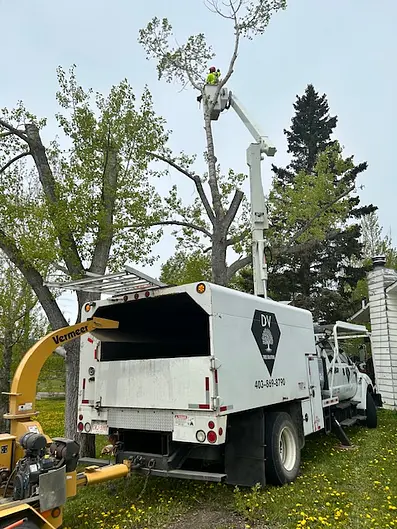 Quick response and assessment for a large poplar tree that was dying and encroaching upon the neighbours yard. They gave us a reasonable quote and took down the tree. The clean up was well done, logs stacked and branches taken away. We also had them properly trim a Russian Olive tree that was in ...